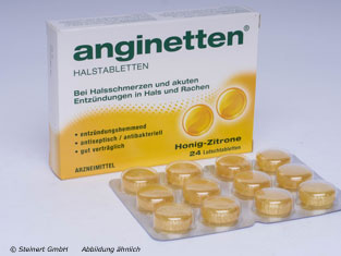 Aginetten Halstabletten werden angewandt zur vorübergehenden unterstützenden Behandlung von Entzündungen im Mund-und Rachenraum, z.B. Mandelentzündung, außerdem bei Erkältungskrankheiten und Halsschmerzen bei grippalen Infekten.Die Halstabletten enthalten den Wirkstoff Cetylpyridiniumchlorid. Der Wirkstoff tötet Krankheitserreger auf Mund-und Rachenschleimhaut ab und hemmt deren Wachstum. Die Anginetten eigen sich besonders gut zur Linderung von Halsschmerzen und starke Schluckbeschwerden. Durch langsames Zergehenlassen im Mund kann sich der Wirkstoff gut verteilen.