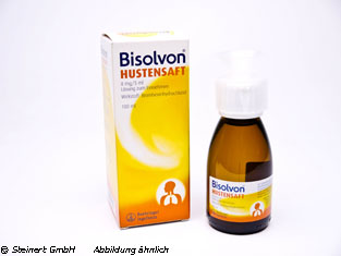 Bisolvon® Hustensaft. Wirkstoff: Bromhexinhydrochlorid. Anwendungsgebiet: Zur Schleim lösenden Behandlung bei akuten und chronischen Erkrankungen der Bronchien und der Lunge mit zähem Schleim. Warnhinweis: Enthält Maltitol-Lösung, Benzoesäure und Levomenthol. Apothekenpflichtig.