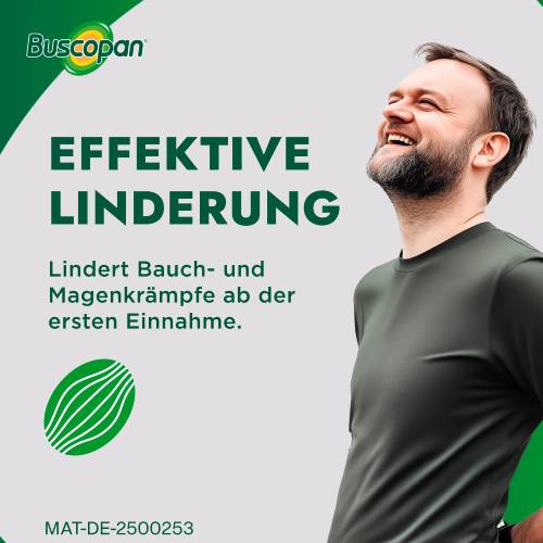 Krampft und schmerzt es im Bauchbereich? Dann gilt es, das unangenehme Ziehen und Stechen möglichst schnell zu lindern. Die Buscopan® Dragées beginnen bereits innerhalb von 15 Minuten zu wirken. Dank des Wirkstoffs Butylscopolamin werden Magen-Darm-Beschwerden gezielt gelindert, die beispielsweise durch Stress, Blähungen, einen Reizdarm oder Lebensmittelunverträglichkeiten verursacht wurden.