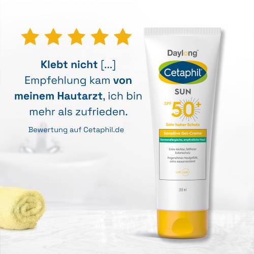 Das Cetaphil Sun Daylong SPF 50+ Sensitive Gel-Creme ist dank der fett- und emulgatorfreien Formulierung speziell für fettige, allergische und besonders sonnenempfindliche Haut, sowie Anwender, die zu Sonnenallergie oder Mallorca Akne neigen, geeignet. Auf Konservierungsstoffe, Parfüm und Emulgatoren wird verzichtet. Die Hautverträglichkeit von Cetaphil Sun Daylong wurde dermatologisch bestätigt. Wenn Sie gerne auf hochwirksamen, zuverlässigen und besonders verträglichen Sonnenschutz vertrauen, sind die Cetaphil Sun Daylong SPF 50+ Sensitive Gel-Cremes die richtige Wahl.
