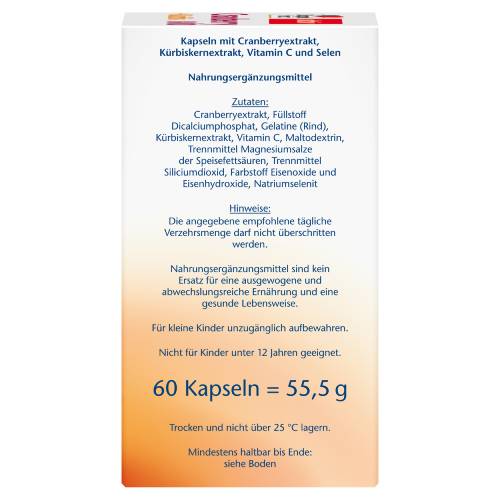 • Mit 800 mg Cranberryextrakt und 200 mg Kürbiskernextrakt als Tagesdosis