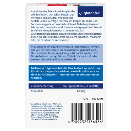 - 1,8 mg Melatonin pro Tagesportion (= 1 Tablette)