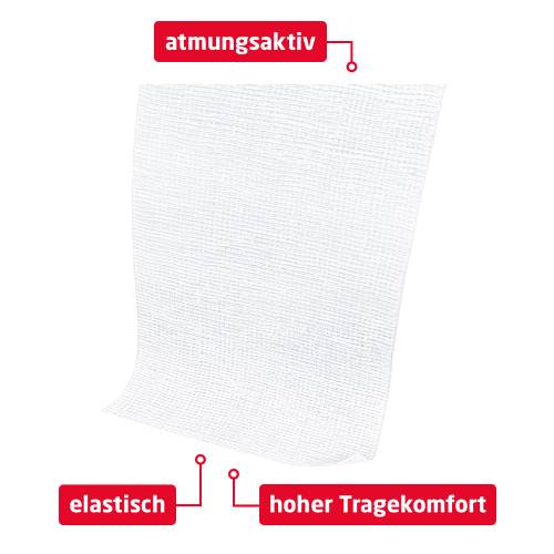 - Elastischer Verband zur Fixierung von Wundauflagen.