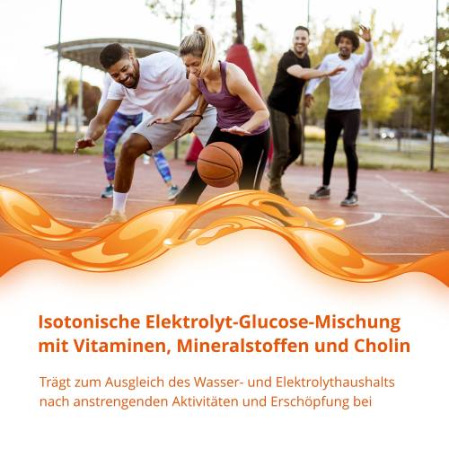 - Isotonische Elektrolyt-Glucose-Mischung, angereichert mit Vitaminen, Mineralstoffen und Cholin