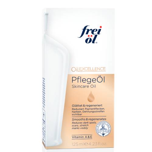 Das leichte frei öl® PflegeÖl ist nach unserer traditionellen Apotheker-Rezeptur konzipiert und hat sich über viele Jahrzehnte bewährt. Es vereint in sich hochwirksame Inhaltsstoffe und natürliche Öle, die nach pharmazeutischen Prinzipien kontrolliert sind. Dank seiner Zusammensetzung werden bei regelmäßiger Anwendung Narben, Dehnungsstreifen und Pigmentflecken reduziert. Mit natürlichen Ölen wird die Haut nachweislich geglättet und vor Feuchtigkeitsverlust geschützt.