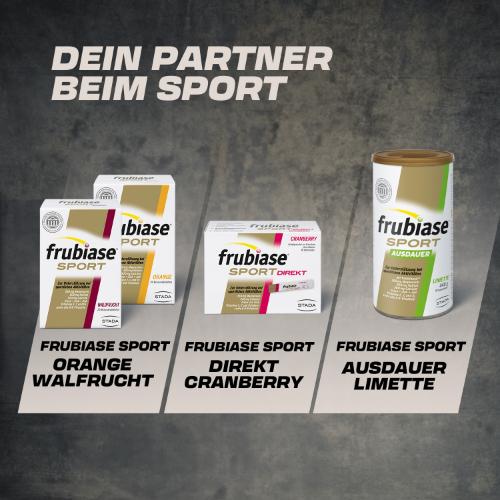 Aus viel Bewegung und Sport resultiert ein erhöhter Mikronährstoffbedarf. Beim Schwitzen gehen außerdem Salze und Mineralstoffe verloren. frubiase® SPORT DIREKT gibt dem Körper zurück, was er beim Sport verbraucht, und deckt den erhöhten Bedarf mit einer ausgewählten Kombination aus Mineralstoffen, Vitaminen und Spurenelementen. Es enthält für Sportler wichtiges Magnesium, Vitamin C, Vitamin E sowie u.a. wertvolle B-Vitamine.