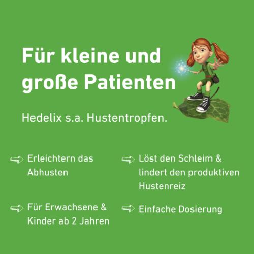 Hedelix® s. a. wird angewendet bei Erkältungskrankheiten der Atemwege, zur Besserung der Beschwerden bei chronisch-entzündlichen Bronchialerkrankungen.