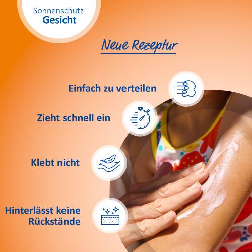 Tragen Sie die Sonnenschutz-Creme vor dem Sonnen großzügig auf und cremen Sie den ganzen Körper damit ein. Besonders gut eincremen: Nasen, Lippen, Ohren, Schultern, Fußrücken und unbehaarte Kopfhaut. Um den Schutz aufrechtzuerhalten, alle zwei Stunden sowie nach dem Baden und Schwitzen nachcremen. Babys und Kleinkinder sollten zudem vor direkter Sonneneinstrahlung geschützt werden und es sollte ein Sonnenschutz mit hohem Lichtschutzfaktor verwendet werden.
