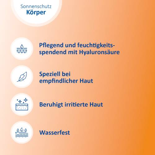 Dank der leichten Rezeptur ist die Sonnenschutz-Lotion besonders gut verträglich und sorgt für ein angenehmes Hautgefühl. Zudem pflegt sie die Haut und spendet Feuchtigkeit mit Hyaluronsäure. Die Lotion ist wasserfest und korallenfreundlich, was sie zum idealen Begleiter für den nächsten Urlaub macht. Die Verpackung ist recycelbar (muss nicht getrennt entsorgt werden) und schützt somit nicht nur die Haut, sondern trägt auch zur Nachhaltigkeit bei.