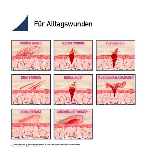 • Effektiv – für akute Wunden (z. B. Schürf-, Schnitt- oder Platzwunden)