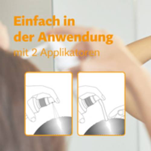 Tragen Sie das Arzneimittel auf die trockene Kopfhaut auf. Massieren Sie das Arzneimittel danach leicht ein.