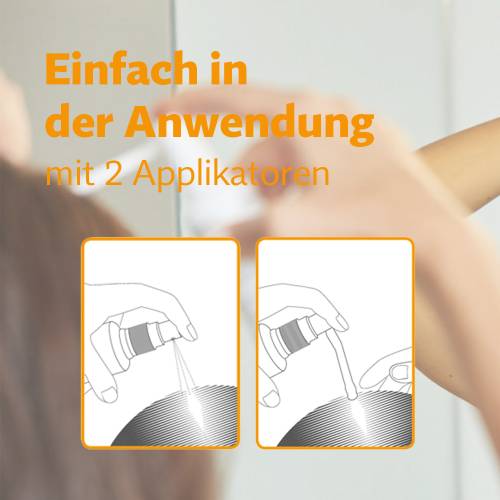 Tragen Sie das Arzneimittel auf die trockene Kopfhaut auf. Massieren Sie das Arzneimittel danach leicht ein.