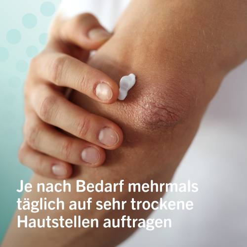 Tragen Sie Multilind® derma:care HYDRO Intensiv Repair Creme je nach Bedarf auf sehr trockene Hautstellen auf.