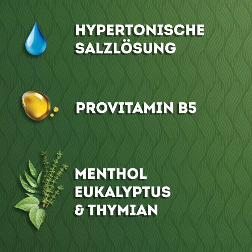 - NATÜRLICHE INHALTSSTOFFE: Hypertonische Salzlösung die hilft, die Nase auf natürliche Weise* zu befreien, ProVitamin B5 befeuchtet die Nasenschleimhaut, Menthol, Eukalyptus & Thymian sorgen für einen erfrischenden Duft, abschwellend, ohne Konservierungsstoffe* basierend auf dem osmotischen Wirkmechanismus