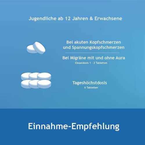 | Jugendliche ab 12 Jahren (ab 43 kg Körpergewicht) und Erwachsene | 1-2 Tabletten | 1-3 mal täglich | im Abstand von 4-8 Stunden, unabhängig von der Mahlzeit |