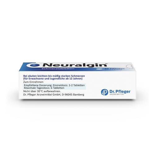 Die Neuralgin Tabletten werden zur schnellen Linderung von mittelstarken Schmerzen angewendet. Die Tabletten enthalten eine Kombination der drei Wirkstoffe Acetylsalicylsaeure, Paracetamol und Coffein. Sowohl die Acetylsalicylsaeure als auch das Paracetamol besitzen Schmerzstillende, fiebersenkende und entzuendungshemmende Eigenschaften. Das zusaetzlich enthaltene Coffein sorgt dafuer, dass die beiden Wirkstoffe schneller und intensiver wirken. Zusaetzlich wird durch das Coffein das Herz-Kreislauf-System angeregt, wodurch Muedigkeit verschwindet. Die Neuralgin Tabletten sind in der Lage Kopf-, Ruecken- und Gelenkschmerzen zu mindern.
