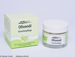 Die Olivenöl Gesichtspflege Creme wird zur natürlichen Pflege von trockener und empfindlicher Haut angewendet. Die Creme besteht aus einer Mischung aus toskanischem Olivenöl, sowie Avocado-, Weizenkeim- und Mandelöl. Durch das Olivenöl wird die Haut intensiv mit Fett und Feuchtigkeit versorgt. Die verschiedenen Öle bieten der Haut einen wirksamen Schutz gegen Austrocknen und unterstützen gleichzeitig die Regenerationsfähigkeit. Oftmals fühlt sich die Haut bereits nach kurzzeitiger Anwendung wieder zart und geschmeidig an. Die Olivenöl Gesichtspflege Creme zieht schnell und fettet nicht, wodurch sie sich auch sehr gut als Unterlage für ein Makeup eignet.