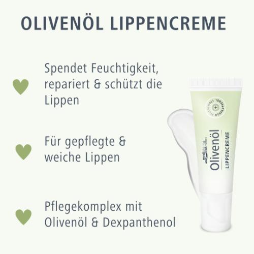Raue und rissige Lippen benötigen eine spezielle Pflege. Die reichhaltige Olivenöl LIPPENCREME spendet Feuchtigkeit, repariert und schützt die Lippen mit kalt gepresstem Olivenöl, Dexpanthenol, Shea Butter und Vitamin E vor dem Austrocknen. Für sichtbar gepflegte und fühlbar weiche Lippen.