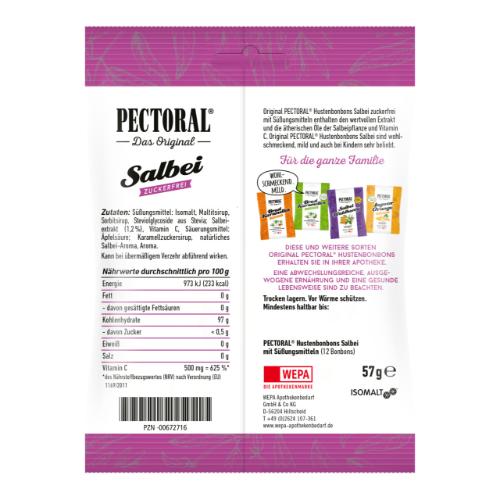 Original PECTORAL® Hals-Karamellen Salbei zuckerfrei enthalten den wertvollen Extrakt und die ätherischen Öle der Salbeipflanze und Vitamin C. Schon ein Bonbon allein wirkt sich z.B. bei Erkältung und Heiserkeit wohltuend Ihren Hals und Rachen aus und ist dabei wohlschmeckend und mild.