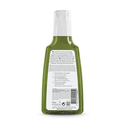 Für den Helfer in der Not bei fettigem Haar haben die RAUSCH Expertinnen in Kreuzlingen am Bodensee die besten Inhaltsstoffe aus der Natur ausgesucht. Das Shampoo besteht zu 91 % aus Inhaltsstoffen natürlichen Ursprungs, davon 40 % aus wertvollen hauseigenen Extrakten wie Panamarinde, Zinnkraut aus Wildsammlung und Meerestang. Wohl auch deshalb versprüht das Shampoo mit dem kräutrig-würzigen Duft einen frischen Hauch von Meeresbrise unter der Dusche.