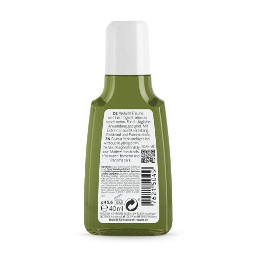 Für den Helfer in der Not bei fettigem Haar haben die RAUSCH Expertinnen in Kreuzlingen am Bodensee die besten Inhaltsstoffe aus der Natur ausgesucht. Das Shampoo besteht zu 91 % aus Inhaltsstoffen natürlichen Ursprungs, davon 40 % aus wertvollen hauseigenen Extrakten wie Panamarinde, Zinnkraut aus Wildsammlung und Meerestang. Wohl auch deshalb versprüht das Shampoo mit dem kräutrig-würzigen Duft einen frischen Hauch von Meeresbrise unter der Dusche.