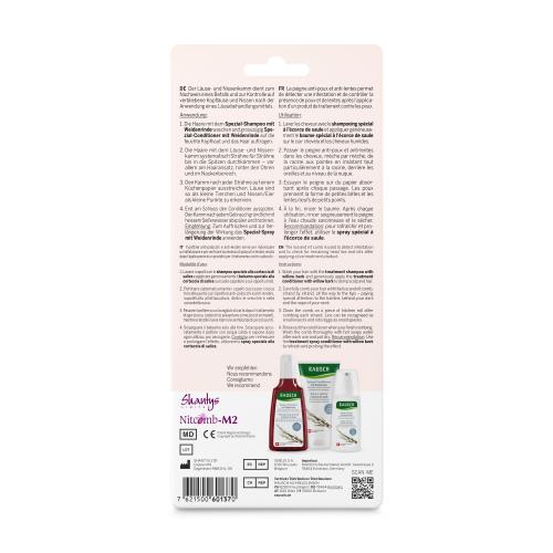 1. Die Haare mit dem Spezial-Shampoo mit Weidenrinde waschen und grosszügig Spezial-Conditioner mit Weidenrinde auf die feuchte Kopfhaut und das Haar auftragen.