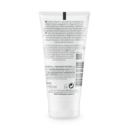 Für die speziellen Bedürfnisse von trockener und strapazierter Haut kommt die Formulierung komplett ohne Silikone aus, ist vegan und beinhaltet 97 % Inhaltsstoffe natürlichen Ursprungs. Darüber hinaus haben die RAUSCH Expertinnen eine Menge Inhaltsstoffe aus der Natur zusammengestellt: Reichhaltige Sheabutter sowie Extrakte aus Kamille, Hafer und Herzsamen sorgen dafür, dass deine Hände streichelzart verwöhnt werden. Der physiologische pH-Wert von 5,6 ist besonders hautschonendend.