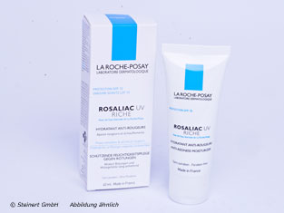 Die ROSALIAC UV REICHHALTIGe Feuchtigkeitspflege von La Roche-Posay wurde speziell für empfindliche und zu Rötungen oder Rosazea neigende Haut entwickelt. Die Textur wirkt bei Rötungen und gereizter Haut angenehm frisch und beruhigend. Die Gesichtscreme kaschiert Hautrötungen direkt nach dem Auftragen der zartgrünen Textur und lässt den Teint sichtbar ebenmäßiger wirken. ROSALIAC UV REICHHALTIG mit Vitamin B3 und Thermalwasser erhöht die natürliche Widerstandskraft der Haut gegenüber äußeren Reizungen und hilft dabei, Bindegewebe und Gefäßwände kontinuierlich zu kräftigen. Dadurch werden neuen Hautrötungen und Hautproblemen wie Brennen, Hautprickeln, Hitzegefühl sowie kleinen, sichtbaren Äderchen aktiv vorgebeugt. Zusätzlich schützt das patentierte Mexoryl XL Filtersystem mit LSF 15 die Haut täglich vor UV-Strahlung, die ansonsten unerwünschte Rötungen verstärken kann. Ohne Duftstoffe.