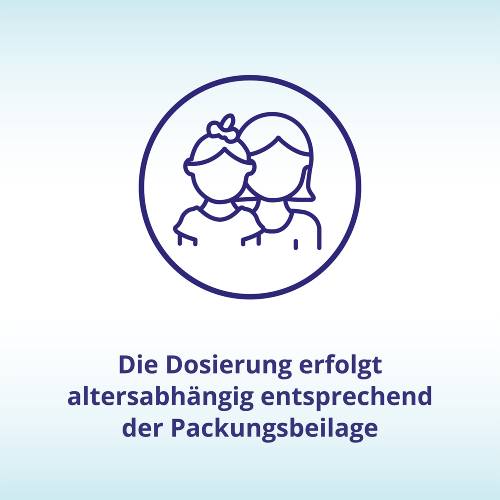 | Kinder mit 36-38 kg Körpergewicht | 22-31 Tropfen | 3-4 mal täglich (66-124 Tropfen) | im Abstand von 6-8 Stunden |