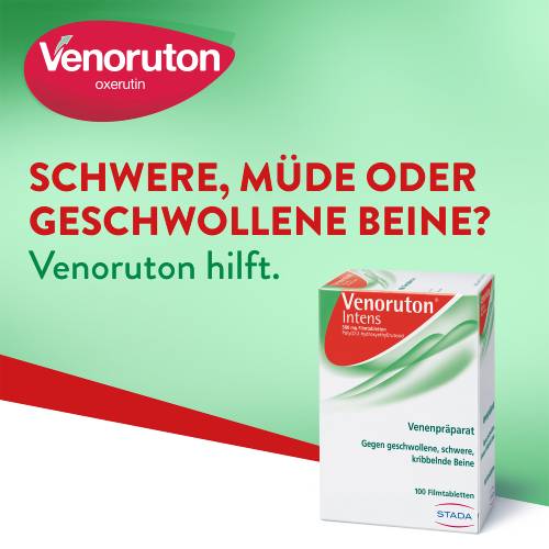 Die Venoruton intens Filmtabletten werden zur natürlichen Behandlung und Vorbeugung von Krampfadern, Thrombosen und oberflächlichen Venenentzündungen angewendet. Die Filmtabletten enthalten den Wirkstoff Oxerutine. Dieser Wirkstoff verfügt über gefäßabdichtende Eigenschaften, wodurch Feuchtigkeitsansammlungen im Gewebe verhindert und die Venen stabilisiert werden können. Die typischen Beschwerden, wie zum Beispiel Schwellungen, Juckreiz und Schmerzen können gelindert werden. Die Venoruton intens Filmtabletten eignen sich auch zur unterstützenden Behandlung von Diabetikern mit einer Gefäßschwäche der Augen.