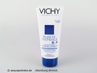 Die Vichy Purete Thermale 3 in 1 Milch wird zur täglichen, gründlichen Pflege von empfindlicher Haut angewendet. Die Milch beinhaltet Reinigungsmilch, Gesichtswasser und Makeup Entferner. Das Produkt enthält eine Kombination der beiden Pflegestoffe Ubichinol und Thermalwasser. Durch das Ubichinol wird die Zellatmung aktiviert. Das Thermalwasser unterstützt die Sanftheit und die Verträglichkeit des Produktes. Die Vichy Purete Thermale 3 in 1 Milch reinigt gleichzeitig das Gesicht, die Augenpartie und den Hals.
