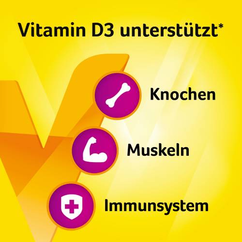 1Vitamin D unterstützt die normale Funktion des Immunsystems und trägt zur Erhaltung normaler Knochen und einer normalen Muskelfunktion bei.