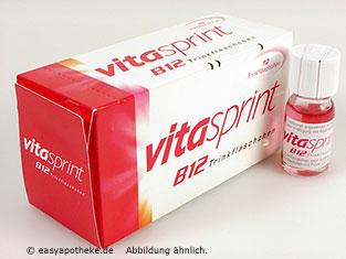Die Vitasprint B12 Trinkampullen werden bei steigenden Leistungsanforderungen und bei einer reduzierten Leistungsfähigkeit angewendet. Die Trinkampullen enthalten eine Kombination aus Glutamin, Phosphonoserin und Vitamin B12. Das Vitamin B12 unterstützt den Aufbau der Nervenzellen. Bei einem Vitamin B12 Mangel kann es zu einer Beeinträchtigung der Funktionsfähigkeit der Nerven, , zu einer Gedächtnisschwäche und zu einem Reflexverlust kommen. Glutamin ist für die Wassereinlagerung in der Zelle verantwortlich und sorgt bei körperlicher Belastung für eine Vergrößerung des Zellvolumens. Das Phosphonerin ist mitverantwortlich für die Funktion der Reizleitung im Gehirn und Nervensystem. Die Vitasprint B12 Trinkampullen regen den Gehirn- und Zellstoffwechsel im Körper an und fördern die Zellregeneration.