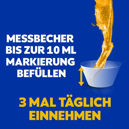 EMPFOHLENE DOSIS: Erwachsene und Jugendliche ab 12 Jahren nehmen 3-mal täglich 10 ml (gemäß Markierung des Messbechers) ein. Nehmen Sie nicht mehr als die empfohlene Dosis ein. Es wird empfohlen, die letzte Dosis vor dem Schlafengehen einzunehmen.