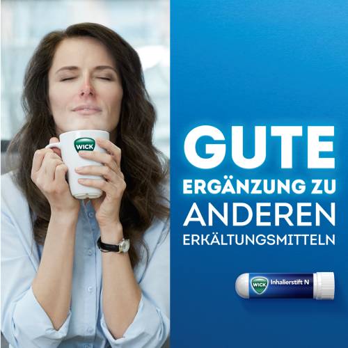Die im WICK Inhalierstift N enthaltenen Wirkstoffe Menthol und Campherentfalten gemeinsam ihre wohltuende Wirkung, die Ihre verstopfte Nase befreitund Sie unbeschwert aufatmen lässt.Der WICK Inhalierstift N ist immer und überall schnell und unkomplizierteinsetzbar.
