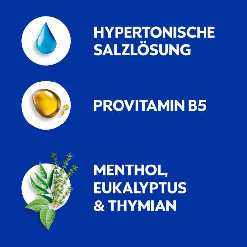 - NATÜRLICHE INHALTSSTOFFE: Hypertonische Salzlösung die hilft, die Nase auf natürliche Weise* zu befreien, ProVitamin B5 befeuchtet die Nasenschleimhaut, Menthol, Eukalyptus & Thymian sorgen für einen erfrischenden Duft