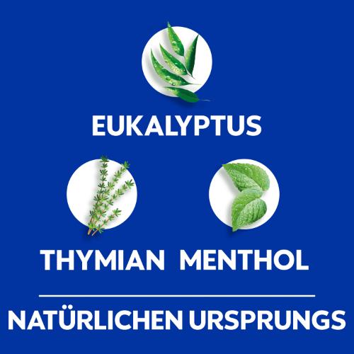 - Menthol-, Eukalyptus- und Thymianöl natürlichen Ursprungs.