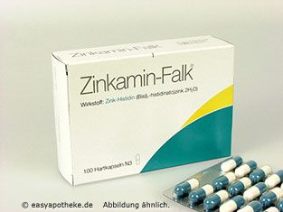 Zinkamin – Falk Kapseln werden eingesetzt zu Behandlung und Vermeidung von Zinkmangelzuständen. Die Kapseln enthalten Zink-Histidin. Dieser Wirkstoffkomplex wird besonders gut vom Körper aufgenommen und gelangt so schnell zu den Zellen. Dabei sorgt die Aminosäure Histidin dafür, dass die Zinkresorption im Darm gesteigert wird. Zink ist besonders wichtig für Wachstum von Haaren und Nägeln, Geschmacks-und Geruchsinn. Es ist maßgeblich beteiligt an der Immunabwehr und der Wundheilung. Ein erhöhter Bedarf an Zink besteht außerdem nach Operationen, Diabetes und Lebererkrankungen. Zinkamin-Falk Hartkapseln unterstützen die Abwehrkräfte und beugen somit Erkältungskrankheiten vor.